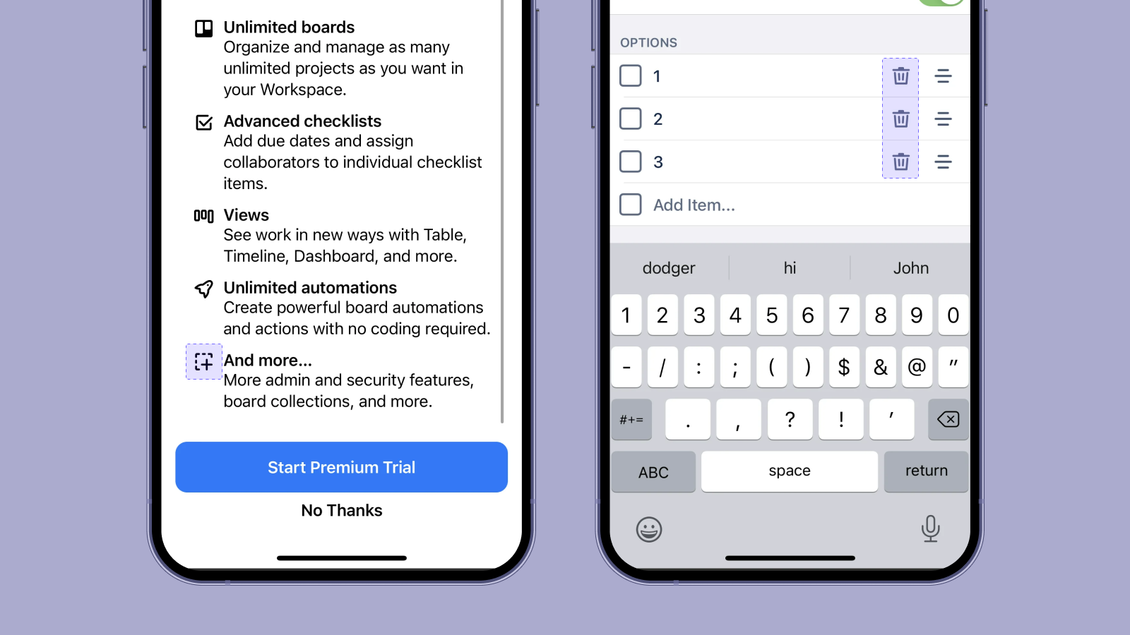 Контурные иконки с разрывами можно встретить в приложении Trello